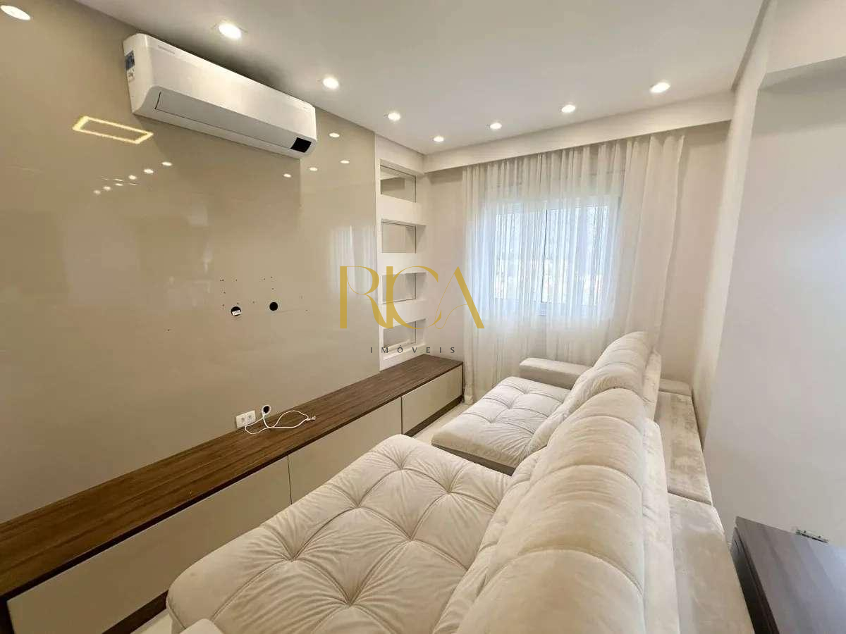 Apartamento 95% mobiliado, com 2 dormitórios (1 suíte), ar-condicionado, 2 vagas cobertas e depósito privativo na garagem.